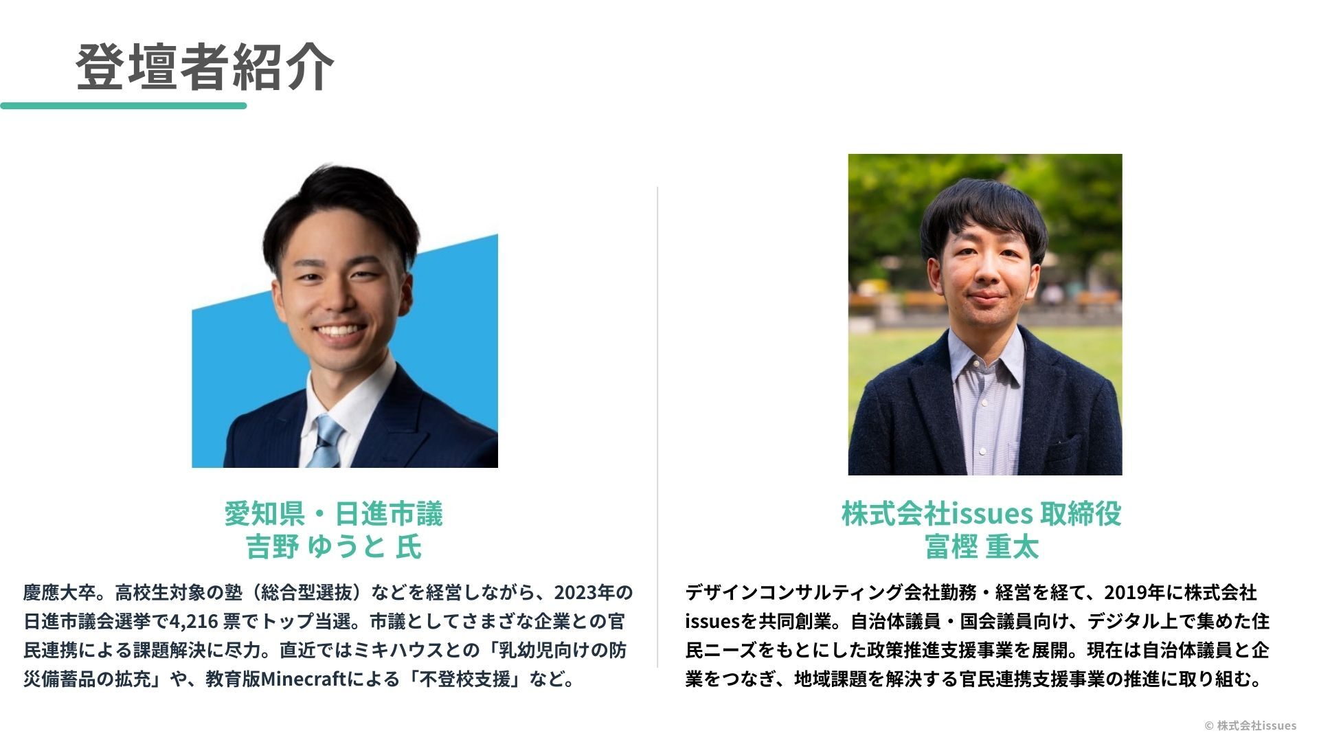 「地域課題を解決したい」その想いに、公務員も、議員も、そして民間団体・企業も、本来は垣根がありません。