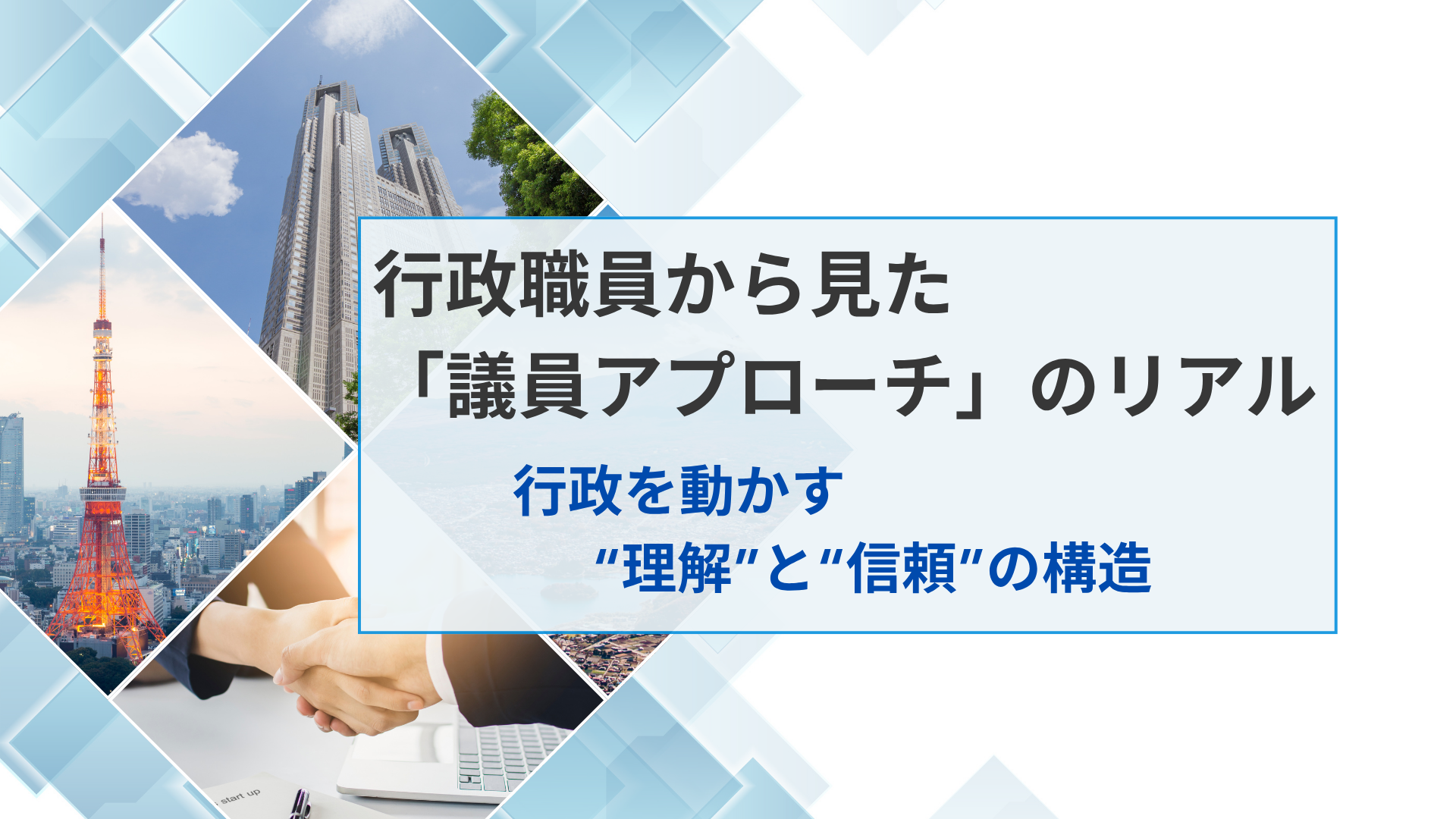 1.議員との関わり 私は、行政職員として産業振興、スタートアップ支援、DX、組織運営に携わりながら、20年以上、地域の議員の方々とさまざまな場面で関わってきました。 有難いことに個別のご連絡をいただく...