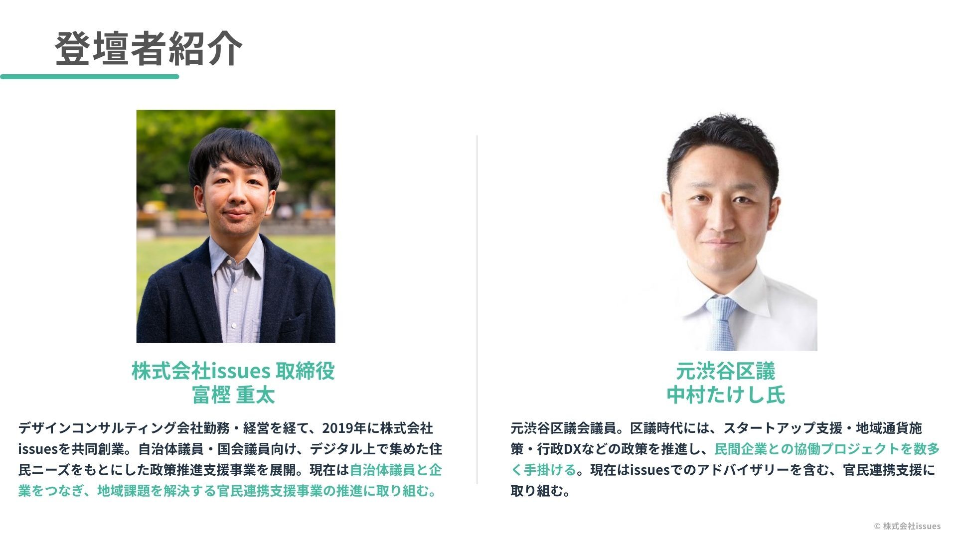 issuesの議員のネットワークを生かし、自治体営業を支援します。議員は自治体の社外取締役にあたります。